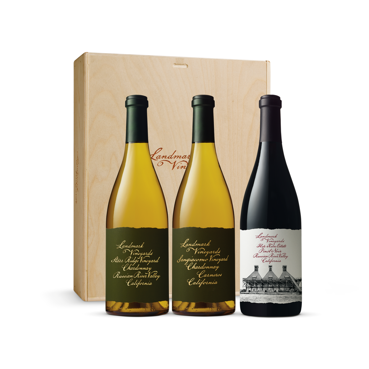 To highlight this legendary winemaking region, this 750mL trio of Sonoma County favorites showcases the unique characteristics of Carneros and the Russian River Valley. Each region is characterized by foggy mornings and sunny days followed by very cool nights, which allows chardonnay and pinot noir grapes to develop full-flavor maturity.